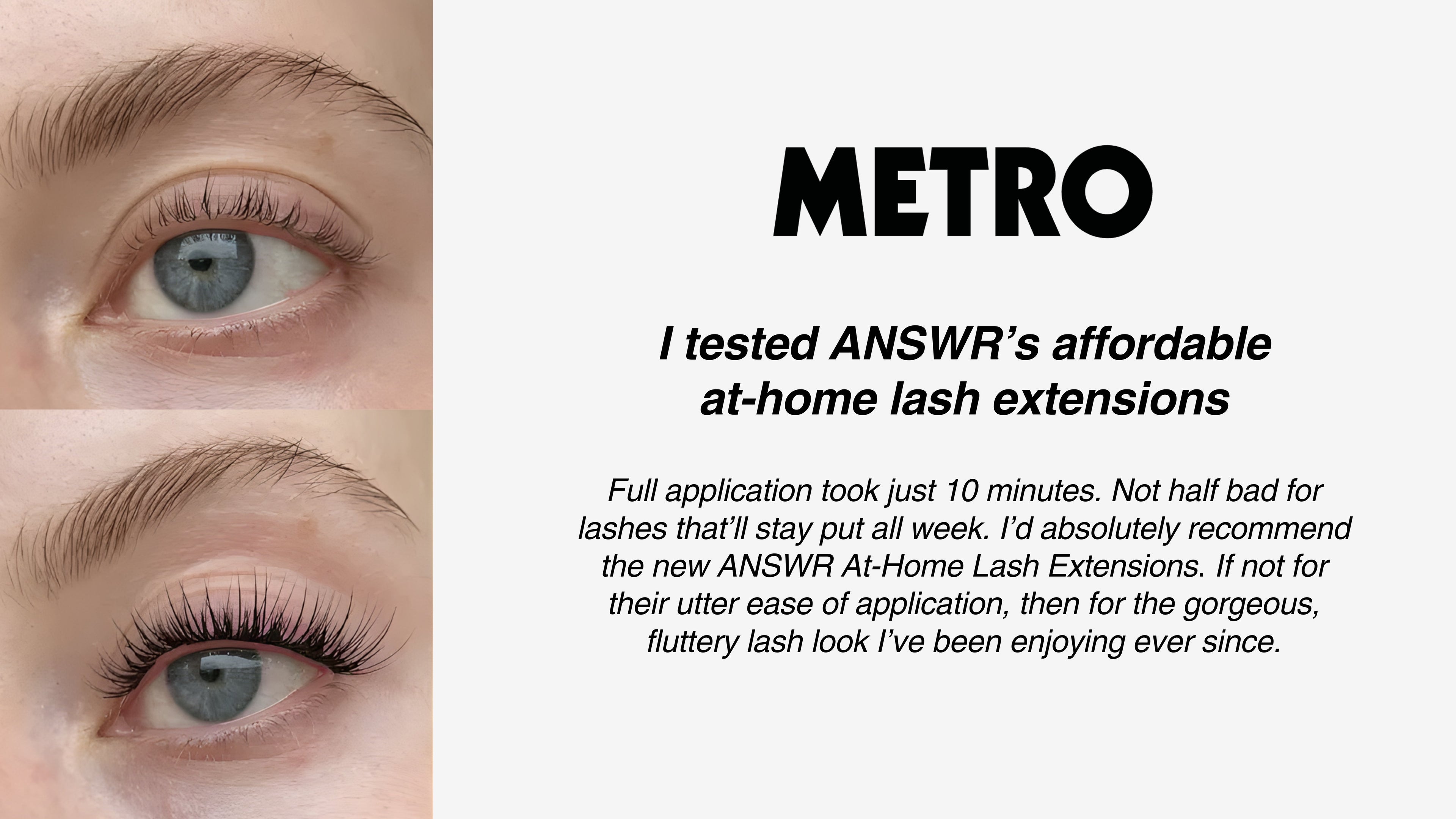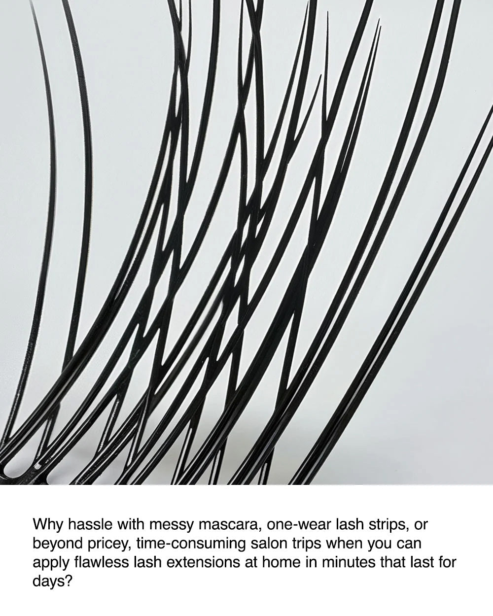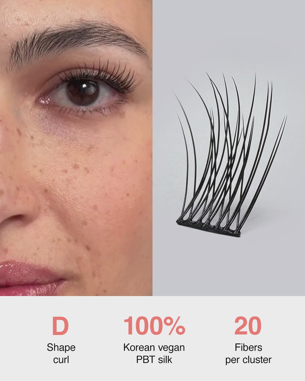 This beginner-proof essentials kit includes all the necessities to get you started with at-home lash extensions. Apply in just a few simple steps and wear them for 7 days. Using the highest quality Korean, light-as-feather, vegan silk, the pre-mapped lash clusters are designed to be applied under your natural lashes, creating a natural, salon-like look. Includes all the tools and accessories needed for a seamless application. No skills required.