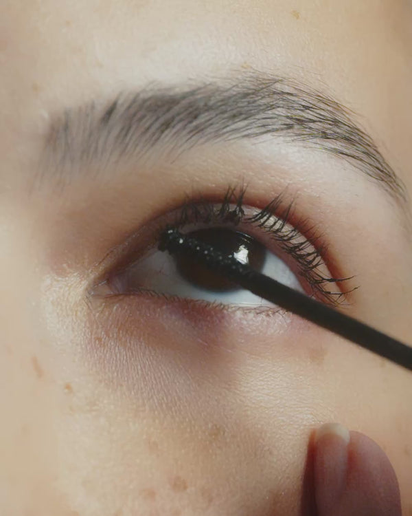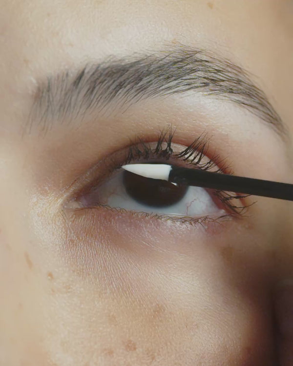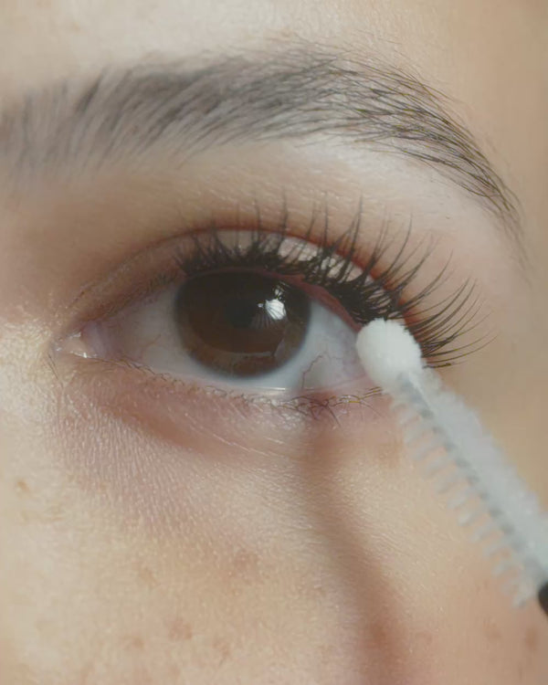 Starting with clean, dry lashes, apply the black mascara bond to the bottom of your lashes and let it dry for 30 seconds.