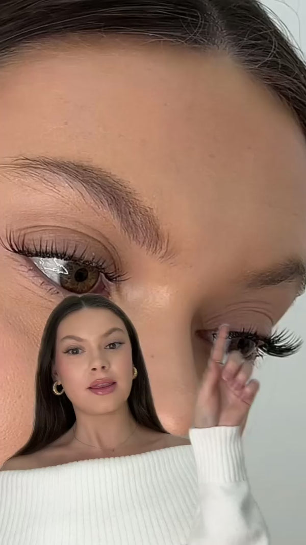 Starting from the inner corner of the eye and working outwards, apply the clusters underneath your lash using the tweezers.