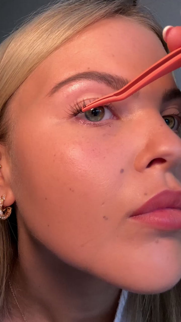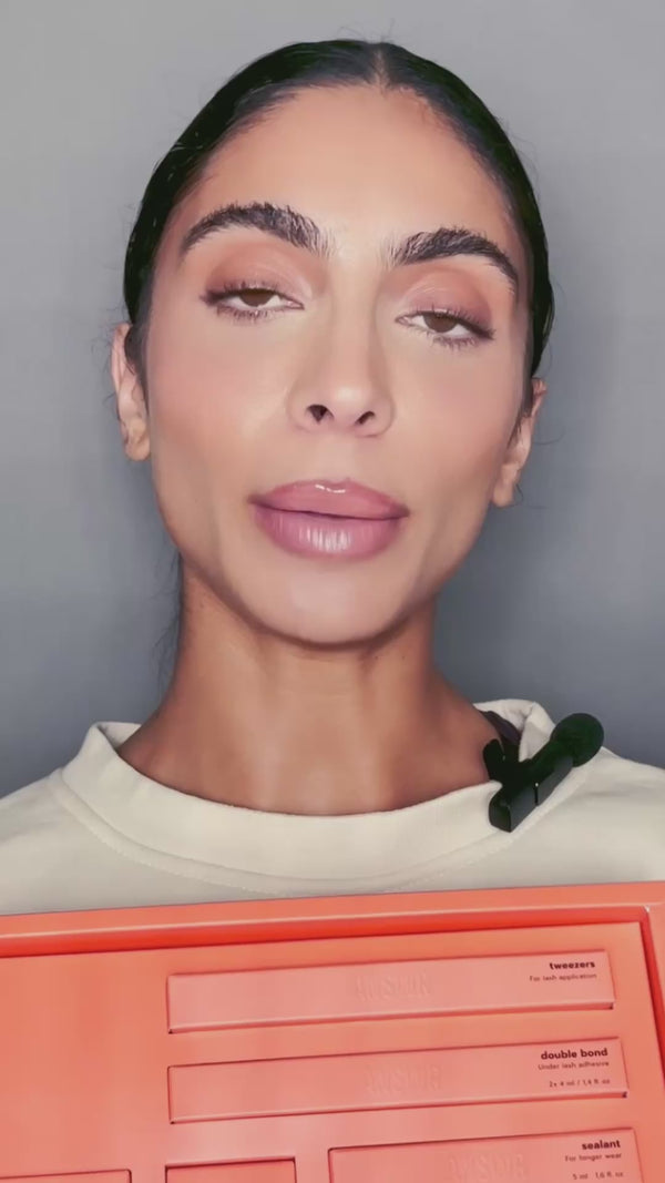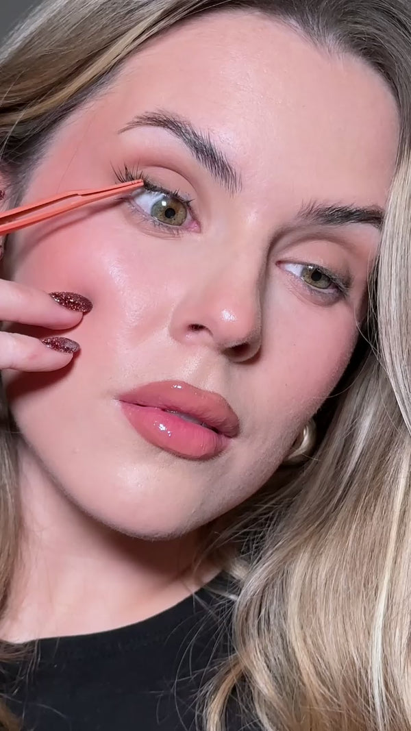 Apply sealant to the lashes to remove any tackiness and wait 2 minutes. Using the pinchers, press the lashes together for that strong finish.