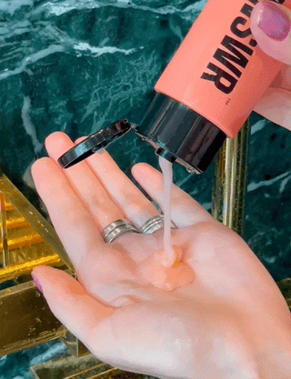 Lather the shampoo in your hands, then gently massage it thoroughly into your hair.