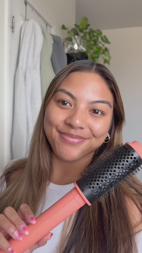 Heated dry-styling brush for salon-level blowouts and curls. No need to juggle a separate hair dryer and round brush. The two sizes of brush attachments let you switch from big, bouncy blowout to tighter, defined curls, while adding volume and eliminating frizz as you go.